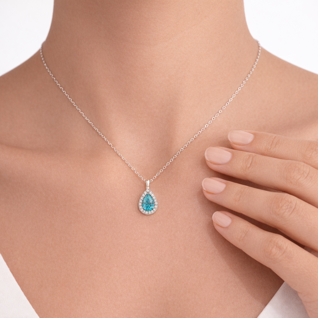 18k Platinium Pendant necklace with Blue Agate and Natural diamonds.